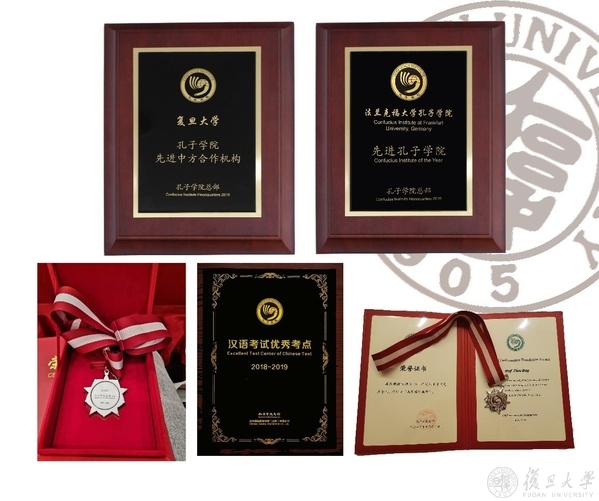 截至2019年底,复旦大学参与共建的7所孔子学院中,已拥有3所全球示范孔子学院,获得“孔子学院先进中方合作机构”“先进孔子学院”“开创者奖”“孔子学院先进个人”“突出贡献奖”等各类奖项共计28次,在全球550所孔子学院中走在最前列。