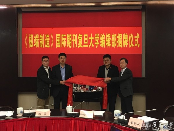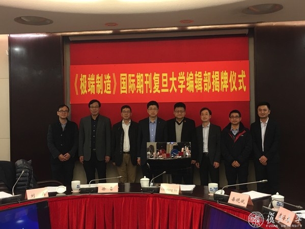 12月24日,《极端制造》国际期刊复旦大学编辑部揭牌。期刊主办单位代表、复旦大学副校长徐雷,期刊牵头单位代表、中国工程物理研究院机械制造工艺研究所所长岳晓斌,期刊国际主编、美国内布拉斯加大学林肯分校教授陆永枫,期刊编委、复旦大学信息科学与工程学院研究员徐敏共同为《极端制造》国际期刊复旦大学编辑部揭牌。复旦大学信息科学与工程学院教授刘冉、赵海斌及青年研究员孔令豹等与复旦大学师生共同见证。