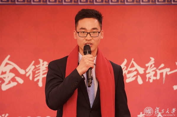 材料科学系博士生侯磊作为学生代表回顾了自己一年来的学术科研经历,对学校的支持表示由衷感谢。谈及遇到的困难,他表示,作为一名复旦学子,正是应该攻坚克难,迎难而上,不忘科研初心,牢记报国使命。2020年即将毕业的他正面临着人生的选择,他说:“只要把我们的选择融入这新时代的壮丽前程中,用奋斗融入这时代洪流,我们的未来就无比宽阔。”