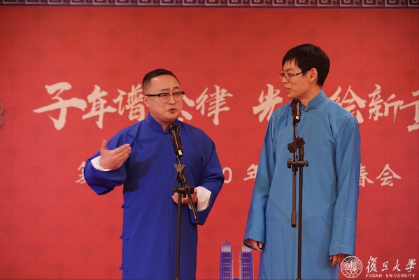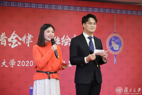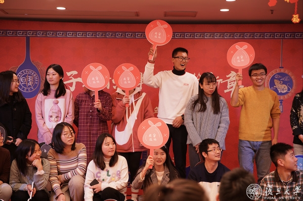 迎春会上,师生们不仅享受到了美味丰盛的年夜饭,还欣赏了合唱、古筝演奏、相声、京剧等精彩节目。参与表演的不仅有学生,还有院系教师、辅导员和职能部处代表。其间穿插了“旦旦大事‘鼠’我知”、“垃圾分类‘鼠’我强”等互动游戏,更有多次激动人心的抽奖环节,现场其乐融融,高潮迭起,师生共享了一场复旦版“春晚”。