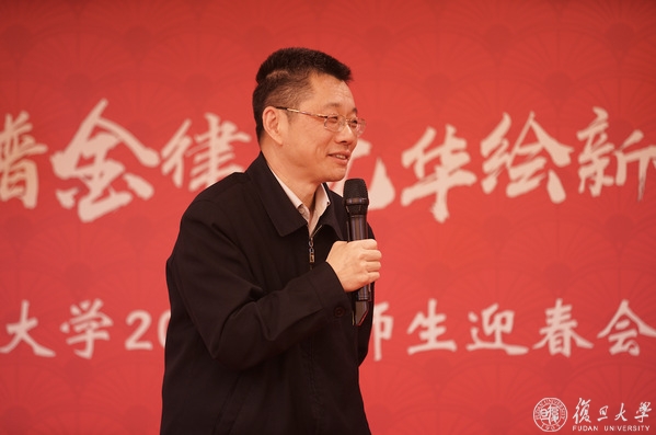 陆靖向留校师生致以节日的问候并向学生代表发放慰问品。作为一名曾经的“复旦人”,他勉励大家珍惜在复旦学习工作的时光,在新的一年继续砥砺奋进。