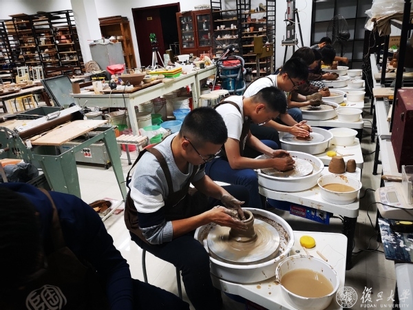 在北区艺术教育中心的陶艺实验室里,穿着咖啡色帆布围裙的同学正托腮盯着自己的作品。