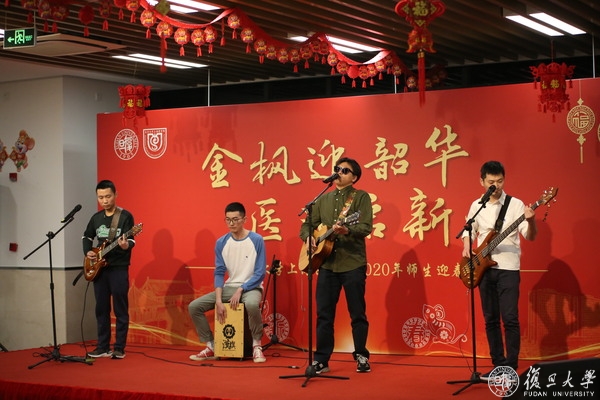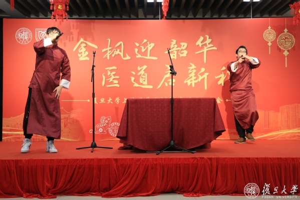 师生们带来了精彩的节目,现场气氛喜庆祥和。乐队合唱New Boy拉开了迎春会的联欢活动序幕,嘹亮的歌声唱响了上医学子对新一年的祝福和期盼。川剧变脸展现了医科学生的传统才艺,变脸的速度让在座师生应接不暇、拍案叫绝。相声《我是歌王》表演妙趣横生地展示了上医学子的日常学习科研生活百态和对上医内涵的理解和贯彻。大数据学院刘铁江老师的魔术表演《先知》通过巧妙的形式表达了对复旦上医未来发展的美好祝愿。此外,民族舞《大鱼海棠》和管理督导员阿姨的欢乐健身操,灵动的舞姿和别出心裁的创意也赢得在场观众连绵不断的掌声,让全场师生享受了一场视听盛宴。