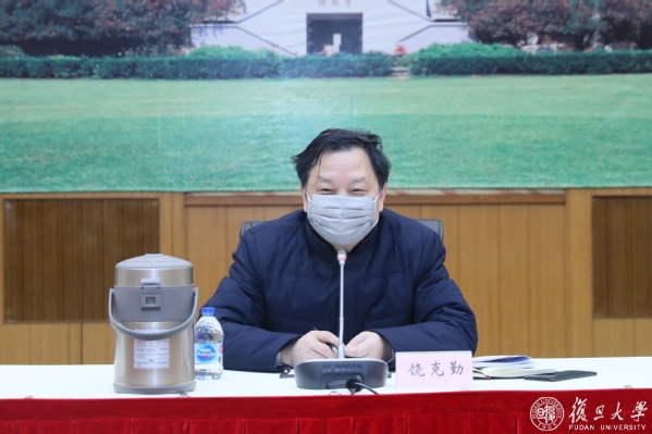 2月13日下午,国务院应对疫情联防联控机制第九工作指导组组长饶克勤一行来到复旦大学,督促、检查、指导学校疫情防控工作,并主持召开座谈会。上海市教委副主任倪闽景,上海市卫健委副主任张怀琼,复旦大学党委书记焦扬,校长许宁生,学校和上海医学院领导桂永浩、袁正宏、尹冬梅、张志勇、吴凡等陪同检查并参加座谈会。