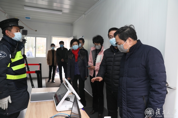 饶克勤一行先后来到邯郸路220号复旦大学正门、旦苑食堂、东区学生宿舍和集中观察点,检查使用红外体温检测系统和门岗查验证件、严格校门管理情况,了解师生就餐形式、公共区域消毒安排,走访宿舍楼,查验人员记录单,检查集中观察点分区管理以及垃圾收储和应急处置方案。