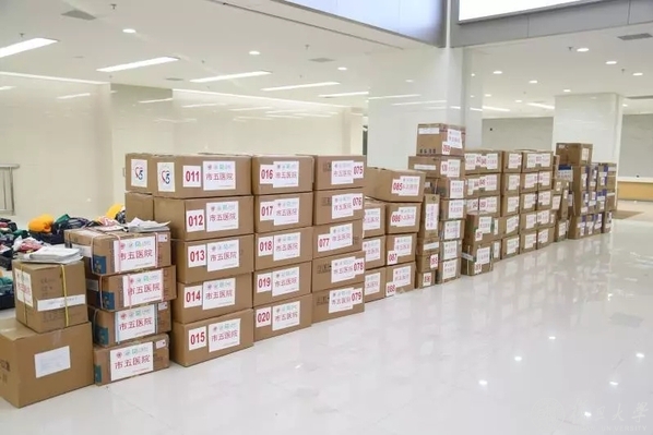 工作人员连夜打包完毕物资,为上前线的医护人员备足粮草