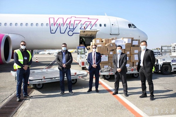 据悉,在国际合作与交流处和对外联络与发展处的牵头下,校内各部门通力合作,在短时间内从各个渠道筹集口罩、防护服等防疫物资,并已将相关物资送达匈牙利驻沪总领事馆。该批物资由匈牙利驻沪总领事馆安排来沪货运专机运送回匈牙利,以最快速度将物资送至匈牙利防疫前线。捐赠物资中的至少10000只口罩和100套防护服,将直接发放给匈牙利著名医科大学塞梅维什大学抗击疫情的一线医护。该批物资于北京时间4月6日由匈牙利驻沪总领事馆安排的专机安全送达布达佩斯机场。匈牙利创新技术部部长顾问伊凡·科瓦斯奇,匈牙利中央银行行长顾问、复旦大学校友乐文特及中国银行当地负责人一同在机场接收物资,将以最快速度将物资送至匈牙利防疫前线。