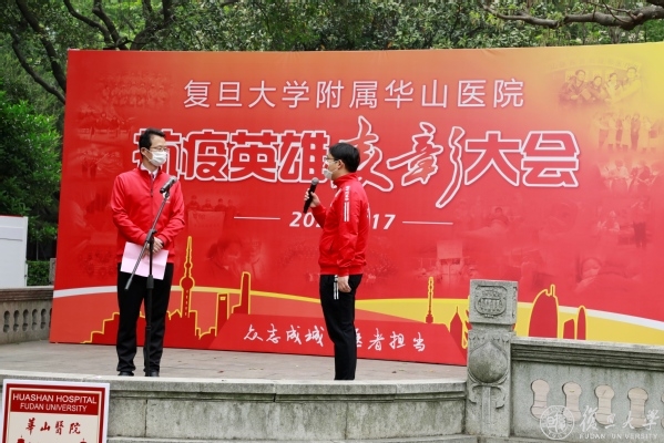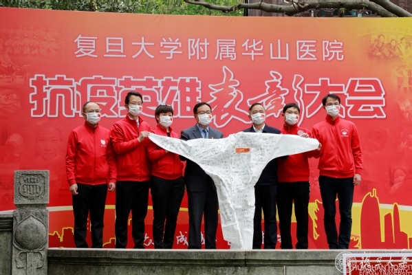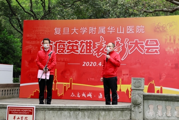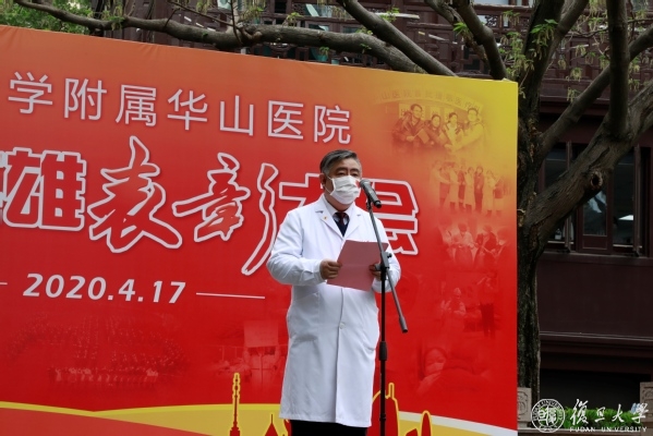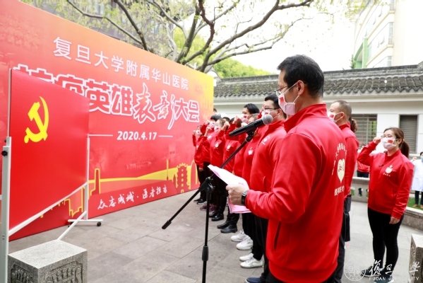 焦扬说,在这场战“疫”中,华山闻令而动,派出最多医疗队员,收治最危重病人、打最硬的仗,成为坚守时间最长的医疗队之一。大家不畏艰险、奋勇争先,迎难而上、攻坚克难,“党员先上”成为华山医院的鲜明标识,践行了“敢为人先、甘于奉献”的华山精神和“正谊明道”的上医院训,让“团结、服务、牺牲”的复旦精神在新时代熠熠生辉。