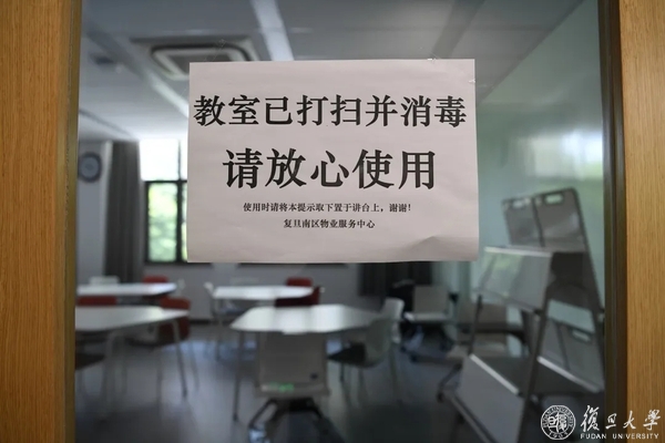 在公共区域,按照“统一消毒用品,统一规范作业,统一消毒记录”要求,物业人员每天消毒4次,开窗通风30分钟以上至少2次,并做好消毒记录公示。若恢复线下教学科研,教学楼也做好了准备,已完成一次全覆盖清洁消毒和设施设备巡检。校内各处卫生间也没有被落下,配置了洗手液,张贴了宣传海报。