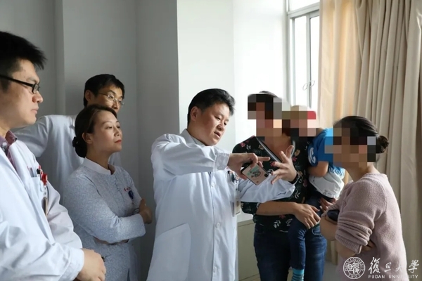徐文东教授为一名来自德国的脑瘫患儿母亲讲解手术原理