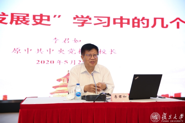 5月25日下午,复旦大学党委理论学习中心组(扩大)举行“四史”学习教育首场集体学习。原中共中央党校副校长、习近平新时代中国特色社会主义思想研究中心研究员李君如应邀作专题辅导报告,复旦大学党委书记焦扬主持会议。