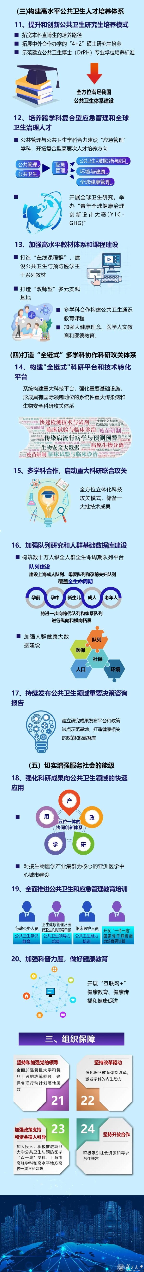 “健全公共卫生安全应急管理体系,离不开科技和人才的关键支撑,高校应当也必须发挥重要作用。”据桂永浩介绍,“行动计划”从“大公共卫生”层面进行学科整体布局和规划,将加快建设世界一流公共卫生学科群,推动上海率先走出一条具有中国特色、体现时代特征、彰显社会主义制度优越性的超大型城市公共卫生安全治理之路,为更好地实施长三角一体化发展国家战略提供支撑和保障,为我国今后更好地应对全球性突发公共卫生事件,促进与保障全球健康做出积极贡献。