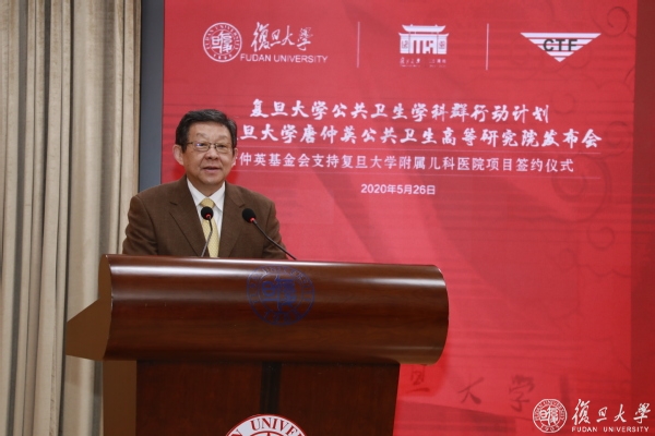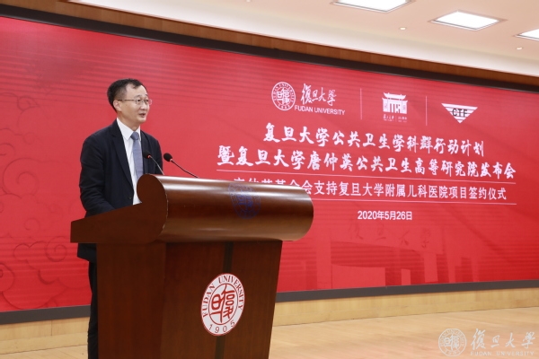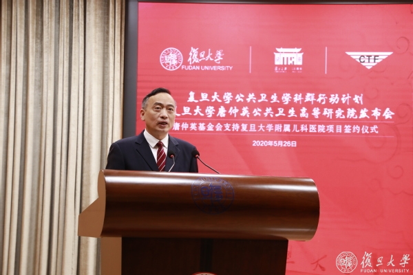 5月26日,复旦大学公共卫生学科群行动计划暨复旦大学唐仲英公共卫生高研院发布会、唐仲英基金会支持复旦大学附属儿科医院项目签约仪式在复旦大学上海医学院明道楼一楼报告厅举行。