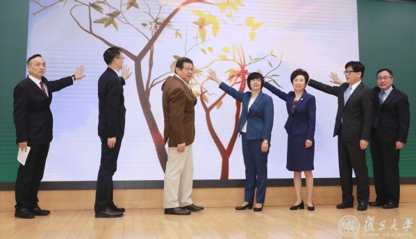 活动现场,陈德铭、宗明、焦扬、顾洪辉、邬惊雷、袁正宏、桂永浩共同启动复旦大学公共卫生学科群行动计划暨唐仲英公共卫生高等研究院项目。
