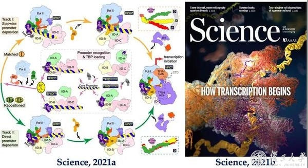 近日,复旦大学上海医学院徐彦辉教授团队有关“转录起始超级复合物组装机制”的研究成果入选中国科协生命科学学会联合体公布的2021年度“中国生命科学十大进展”。徐彦辉团队解析转录起始复合物PIC及其与Mediator(中介体)组成的转录起始超级复合物结构的三维结构,系统地展示转录机器识别不同类型启动子并完成组装的全过程,揭示了转录为何发生在几乎所有基因的启动子上,颠覆了关于启动子识别和转录起始复合物组装的传统认识,阐明了Mediator促进PIC组装和转录激活的机制。上述成果以2篇研究长文发表于《科学》杂志(Science 372, eaba8490;Science 372, eabg0635),其中一篇被Science杂志选为封面文章,题目为“转录如何起始”。