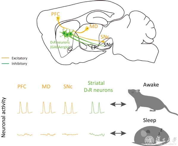 7. 黄志力课题组发现背侧纹状体多巴胺D1受体阳性神经元调控觉醒