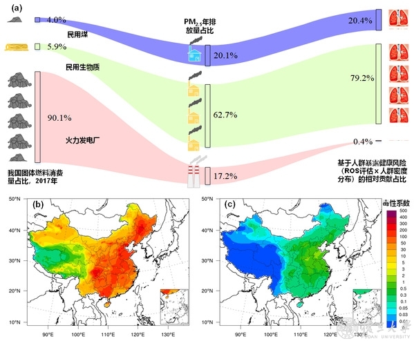 复旦大学环境科学与工程系大气化学团队与清华大学环境学院教授王书肖团队和香港理工大学土木与环境工程系教授李向东团队合作,对固体燃料(能产生热能或动力的固态可燃物质,如煤、薪柴、秸秆等)产生的气溶胶开展多学科交叉研究,基于大量燃烧源现场测量、化学成分甄别、生物毒性解析和空气质量模拟及暴露风险评估,阐明了气溶胶关键化学组分的源头形成机制、人群暴露健康风险和生物毒性机制,发现我国民用固体燃料燃烧所产生的气溶胶人群暴露风险比燃煤电厂排放的气溶胶高出2个数量级,进而提出面向人民生命健康为导向的空气质量管理建议,为基于健康风险的大气污染控制策略提供了新的基础理论支撑。研究成果于2022年1月6日以《基于毒性效应调控的大气污染控制:固体燃料燃烧》(“Toxic potency-adjusted control of air pollution for solid fuel combustion”)为题发表于能源领域顶级期刊《自然-能源》(Nature Energy)(DOI:10.1038/s41560-021-00951-1)。