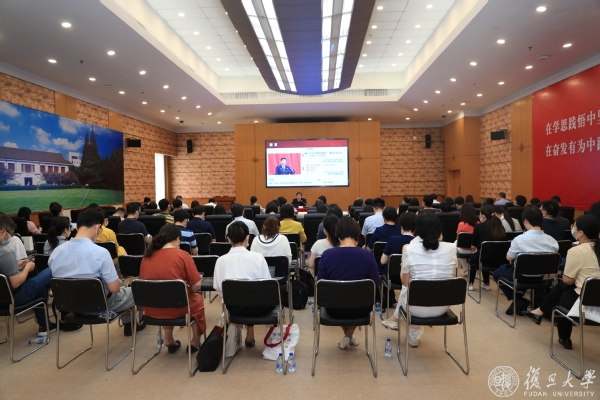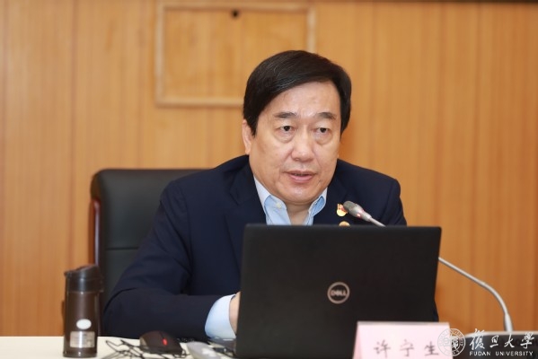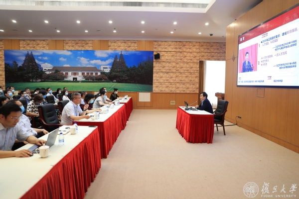 6月30日,中国共产党成立100周年前夕,在邯郸校区逸夫科技楼,校长许宁生为全校机关部处党员代表上了一堂主题党课。