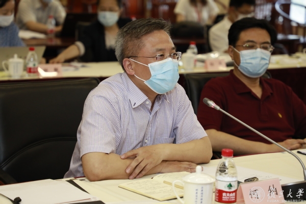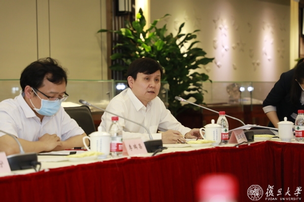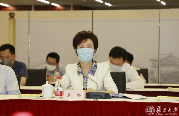 焦扬代表学校向调研组表示诚挚欢迎。她向调研组汇报了全校在抗疫斗争中,在医疗救治、科研攻关、咨政服务、科普宣传等多条战线全力奋战,体现“国家队”责任和担当的情况。她表示,疫情发生后,学校全力贯彻落实总书记和中央要求,在上海市委市政府的领导支持下,全力支持上海医学院抓住契机,制定了《复旦大学加快公共卫生学科群行动计划》,建立了唐仲英公共卫生高等研究院,筹划建设重大传染病和生物安全研究平台。学校将充分发挥综合性大学优势,聚焦国家公共卫生领域重大问题,加快建设融合创新、交叉协同、一体发展的大公共卫生学科体系,为党和国家培养更多卓越的公共卫生人才。