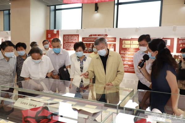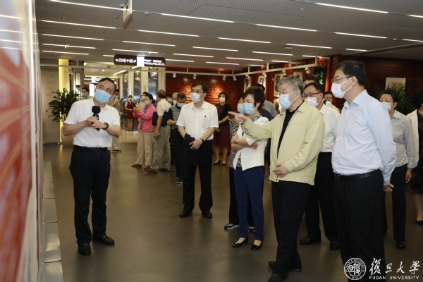 座谈会前,调研组一行参观了“待到山花烂漫时——复旦大学抗击新冠肺炎疫情专题展览”。