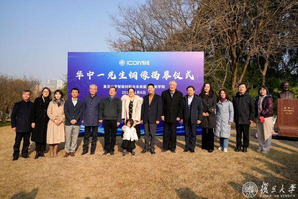 1月8日,为缅怀我国著名科学家、真空科学与技术领域的奠基者和开拓者、复旦大学原校长、材料科学系教授华中一先生(1931-2007),在江湾校区校友林前草坪举行华中一先生铜像揭幕仪式。复旦大学党委书记裘新,上海市真空学会理事长、亚太材料科学院院士、华东师范大学教授孙卓,华中一家属代表华科宁出席铜像揭幕仪式并致辞。复旦大学党委副书记方明,中国科学院院士、复旦大学智能材料与未来能源创新学院院长赵东元,以及华中一生前的同事、学生、亲友代表出席仪式,共同追忆这位将半生心血奉献给科研与教育事业的前辈。本次铜像落成,得到了上海宁泉资产管理有限公司执行董事、1988级校友杨东和上海睿兴投资创始合伙人、1988级校友姚文军的支持。