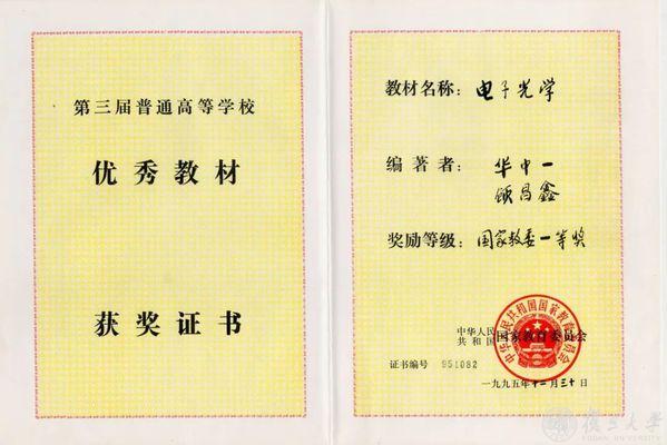 华中一与顾昌鑫合著的《电子光学》荣获1995年国家教委高等学校优秀教材一等奖和1995年上海市高校优秀教材一等奖。