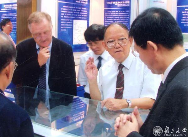 华中一在复旦大学真空五十年成果展览室亲自为来宾讲解(2005年9月)