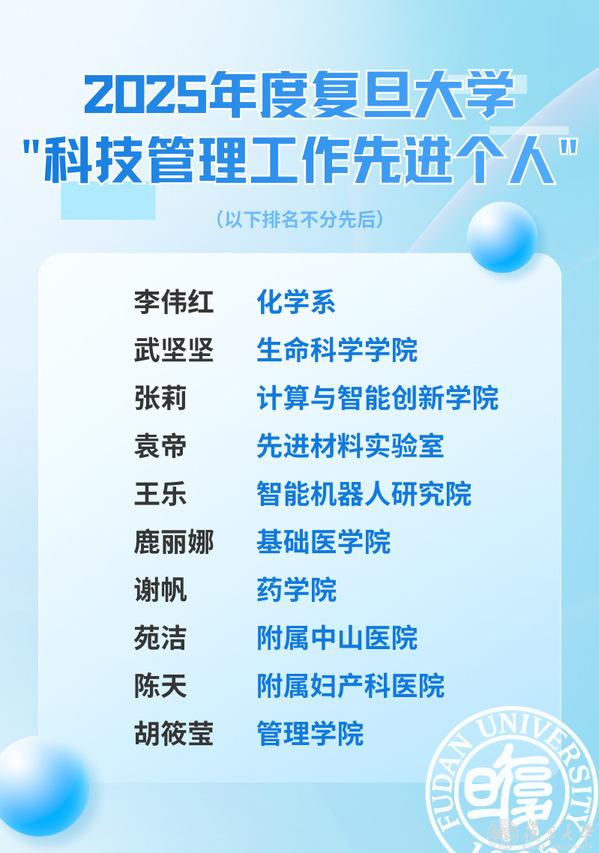 会上,2025年度复旦大学“科技管理工作先进单位”“优秀科技工作者”“科技管理工作先进个人”名单揭晓并颁奖。计算与智能创新学院杨珉、集成芯片与系统全国重点实验室周鹏和脑功能与脑疾病全国重点实验室张嘉漪作为代表发言。