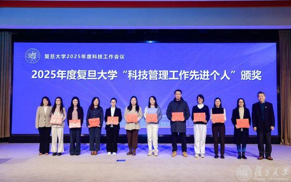 1月16日,复旦大学2025年度科技工作会议在光华楼召开。大会以“加强学科交叉融合,实现高水平科技自立自强”为主题,总结2025年度学校科技工作,部署2026年重点工作,表彰2025年度复旦大学“科技管理工作先进单位”“优秀科技工作者”“科技管理工作先进个人”。