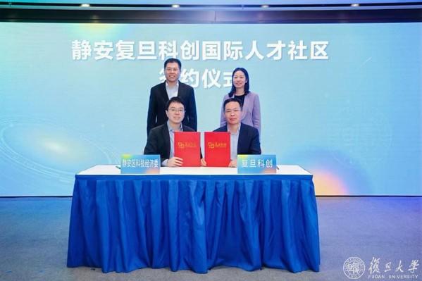 活动现场,在翟磊和许征的共同见证下,静安区科技和经济委员会主任谢天与上海祖泉创新转化研究院院长、复旦科创董事长孙彭军正式签署合作协议,宣布共建“静安复旦科创国际人才社区”。