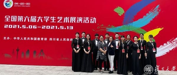 在全国第六届大学生艺术展演活动中,复旦大学学生合唱团的合唱《你的光芒》(原创)、《朝天曲》,复旦大学弦乐团的作品肖斯塔科维奇《第八弦乐四重奏》,复旦剧社原创小品《雪草》,复旦大学的案例《拓展美育视域:艺术与科学前沿教育设计和课程化建设》分获声乐组、器乐组、戏剧组、高校美育改革创新优秀案例一等奖,王智同学的作品《宅家》获得艺术作品二等奖。
