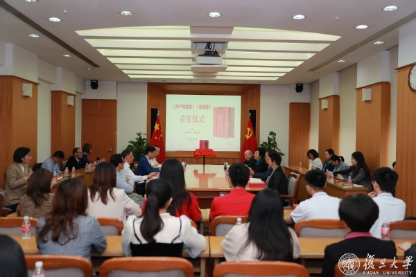 活动现场,上海图书馆事业发展处处长、上海科学技术文献出版社执行董事陆健、复旦大学退休教授、陈望道之子陈振新,为首发仪式揭幕。复旦大学档案馆馆长黄岸青、上海科学技术文献出版社总编辑张树,向复旦大学《共产党宣言》展示馆星火党员志愿服务队队员、复旦大学望道班学生、市级机关青年干部代表赠书。