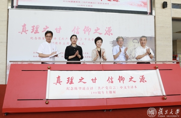 据悉,本次展览由复旦大学、上海市档案局(馆)、中共义乌市委主办,复旦大学档案馆、中共义乌市委组织部、义乌市档案局(馆)承办。展览分为“陈望道与《共产党宣言》”“陈望道与中国左翼文化事业”“陈望道与复旦大学”“望道信仰线山水画长卷”四个部分,汇集了来自复旦大学档案馆、图书典藏部门和上海市档案馆、义乌市档案馆的近300件档案、图片、实物、视频展品,再现了马克思主义在中国从理论走向实践的光辉历程。