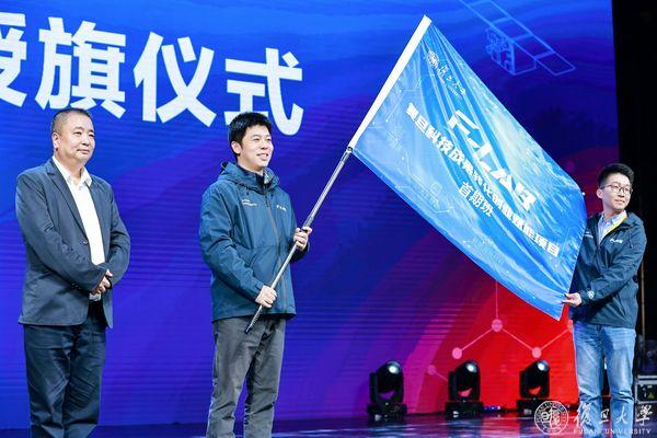 复旦大学材料科学系教授王飞、复旦大学高分子科学系博士校友潘震作为学员代表接过首期F-LAB项目班旗。
