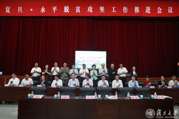 复旦大学党委书记焦扬,大理州委副书记、州长杨国宗,复旦大学副校长张志勇,大理州委常委、大理军分区政委魏新,永平县委书记阿泽新,永平县委副书记、县长字云飞,复旦大学相关部门、院系、附属医院负责人,复旦研究生支教队员、复旦大学附属金山医院援建医务人员,相关专家学者,大理州及永平县相关单位负责人等参加了复旦·永平扶贫攻坚现场推进会。
