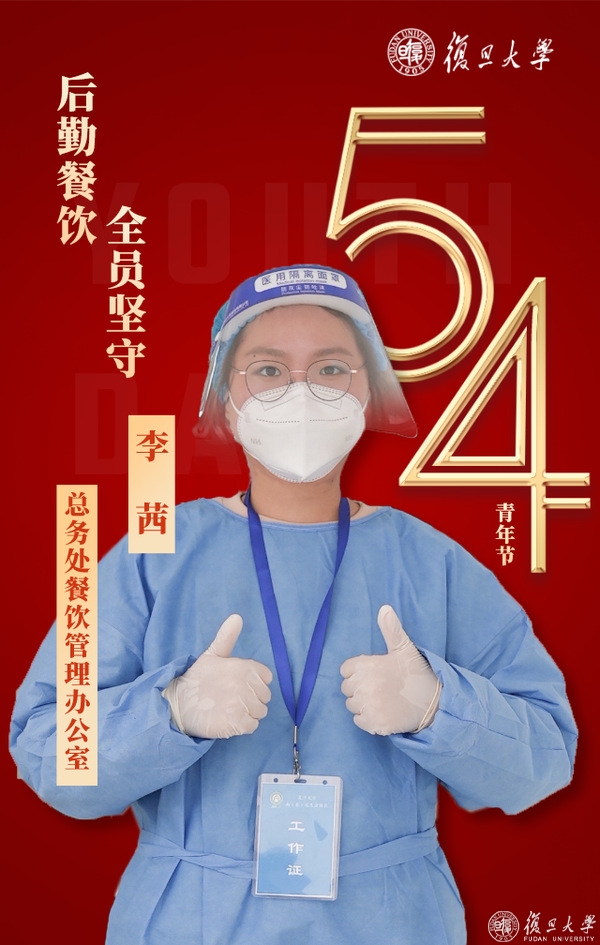 为了保障南区生活园区师生用餐,校总务处餐饮管理办公室科员李茜带领南区食堂所有员工,一刻不离,已连续两个月在食堂坚守岗位,保障园区内5000多位师生的供餐。她说,“我会把学习贯彻总书记重要讲话精神转化为打赢疫情防控攻坚战、建设‘第一个复旦’的强大动力,展现机关青年的担当风采,坚守南食阵地,打赢这场攻坚战。”