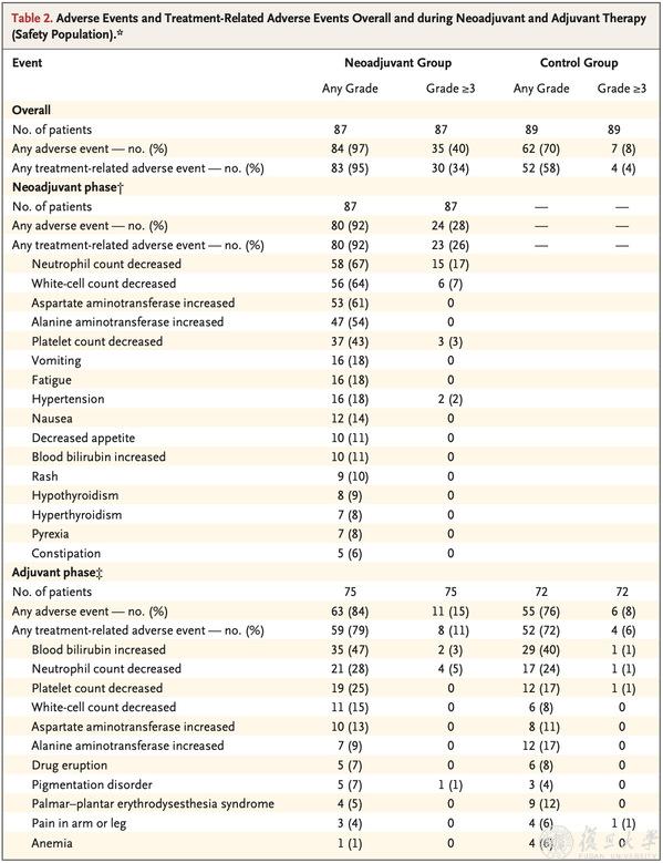 研究于2021年1月至2025年2月期间,共招募178例高危患者,按1:1比例随机分为新辅助组(88例)和对照组(90例)。其中,新辅助组患者术前接受3个周期的GEMOX化疗(吉西他滨1g/m2,D1,8+奥沙利铂 85mg/m2,D1;Q3W)+乐卫玛(8mg/天,PO,QD,90d)和特瑞普利单抗(240mg,IV,Q3W)新辅助治疗,治疗结束后2-4周内行手术切除。对照组患者术前不接受任何抗肿瘤治疗,直接行手术切除。两组患者术后均接受卡培他滨(2500mg/m2/d,分两次,PO,D1-14,Q3W)辅助治疗8周期。主要终点为无事件发生生存期(EFS),次要终点包括总体生存时间(OS)、客观反应率(ORR)、R0切除率、主要病理缓解率(MPR)、病理完全缓解(pCR)率、无复发生存期(RFS)、和安全性等,全程科学严谨,确保研究结果的可靠性。