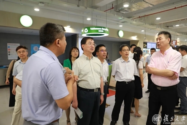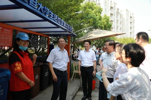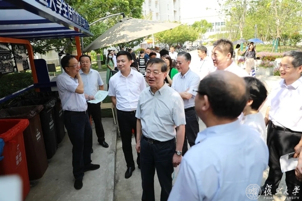 9月9日上午,在上海市教委的协调下,市人大城建环保委、市政协人口资源环境建设委,会同市绿化市容局、市机管局等市政府相关部门负责人实地检查指导复旦大学垃圾分类减量工作。