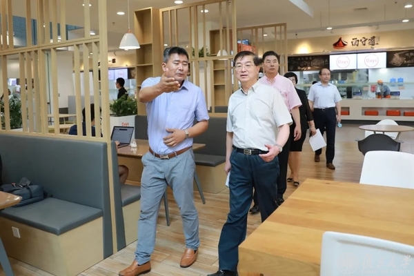 在邯郸校区北区,调研组一行一行先后检查了北区校门四分类智能垃圾桶、宿舍区新改造集中投放点、学生宿舍、北区食堂。