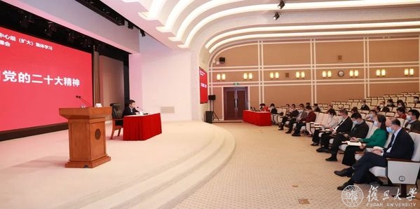 11月11日下午,复旦大学党委理论学习中心组(扩大)集体学习和理论宣讲专家集体备课会举行,专题学习党的二十大精神。中央宣讲团成员,中国人民大学党委副书记、校长林尚立在光华楼东辅楼作辅导报告,复旦大学党委书记焦扬主持会议。