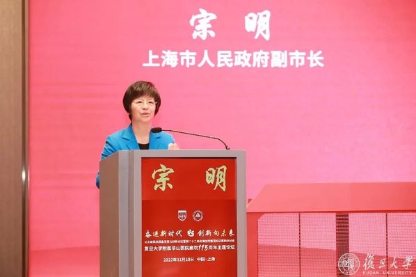 宗明在致辞中指出,近年来上海深入贯彻党和国家关于推动公立医院高质量发展的重要意见,结合城市实际和群众现实需求制定了公立医院高质量发展的上海方案,切实提高人民群众和广大医务人员的获得感和满意度。她强调推动公立医院高质量发展,必须把握几个方面:一是建体系,坚持顶天立地强腰,通过国家医学中心和国家区域医疗中心建设,打造医学研究高峰、成果转化高地;抓好现行医疗体系建设,推动上海优质医疗资源向五大新城和远郊倾斜;抓好社区卫生服务,打造一批示范型社区健康管理中心、康复中心和护理中心;二是抓创新,聚焦生命科学、生物医药科技前沿,争创更多国家医学研究中心和技术创新中心,大力发展再生医学、精准医疗、生物治疗、脑机融合等高新技术;三是强管理,重点加强公立医院内部管理,发挥分层分类绩效评价职责范围作用,全面推进医疗卫生数字化转型;四是促联动,重点深化三医联动,不断汇聚公立医院高质量发展新动能。她指出,华山医院目前拥有三大国家医学中心,部分学科特色引领全国,形成了以总院为中心,以领先学科为龙头,推动优质医疗资源扩容和区域均衡的布局,打造整体环绕上海的一院多区的办医格局。她希望华山医院能够紧紧围绕打造“中国最具影响力的国际化优质医院”的目标,抢抓机遇,主动作为,走好高质量发展的“华山之路”。