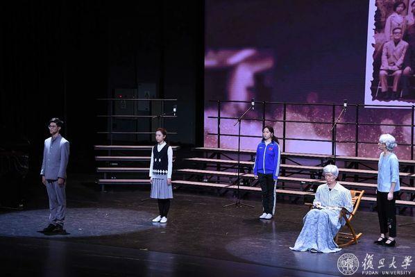 中场表演是由数学科学学院分团委带来的美育微团课:大师剧《此身到老属于党》片段,将苏步青老校长的光辉事迹生动地呈现在舞台上。