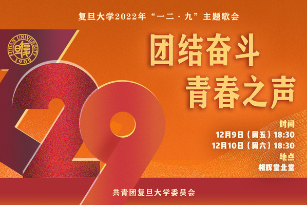 一首首青春高昂,一曲曲歌声嘹亮,奏响了复旦人的爱国之情与时代担当。为了纪念“一二·九”运动87周年,校团委组织在全校范围内开展“团结奋斗·青春之声”2022年复旦大学“一二·九”主题歌会。