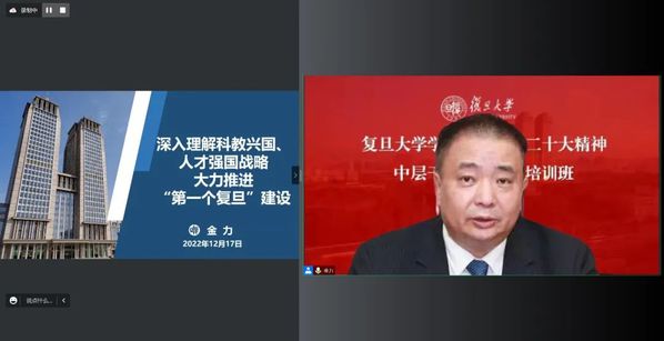 12月16日至17日,围绕学习贯彻落实党的二十大精神,校长金力,校党委常务副书记裘新,常务副校长许征,校党委常务副书记周亚明,校党委副书记、纪委书记金海燕等五位校领导结合工作实际,为全校中层干部线上授课。同期全校中层干部展开分组交流研讨,原原本本、结合重点、联系实际学,将党的二十大的战略部署和各项重大任务转化为推动“第一个复旦”建设的动力。