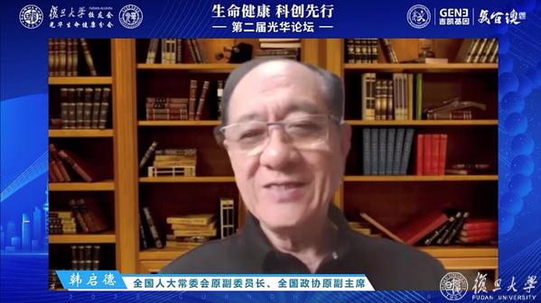 如何认识国家提出的“面向人民生命健康”?生命健康领域,国际科技前沿有哪些新理论、新思路、新方向?我国在其中所处的地位和取得成果有哪些?同行、校友,可以给予哪些支持?在高峰对话环节,韩启德、张文宏、丁克、复旦大学药学院党委书记王建新、上海吉凯基因医学科技股份有限公司董事长曹跃琼等围绕上述问题开展对话交流。复旦大学校友会光华生命健康分会执行理事长、中国科学院上海药物研究所研究员沈竞康主持高峰对话。