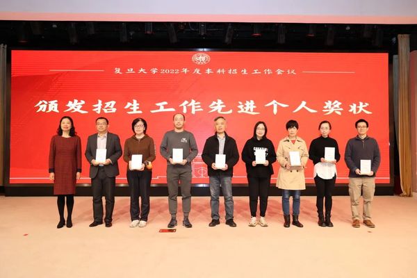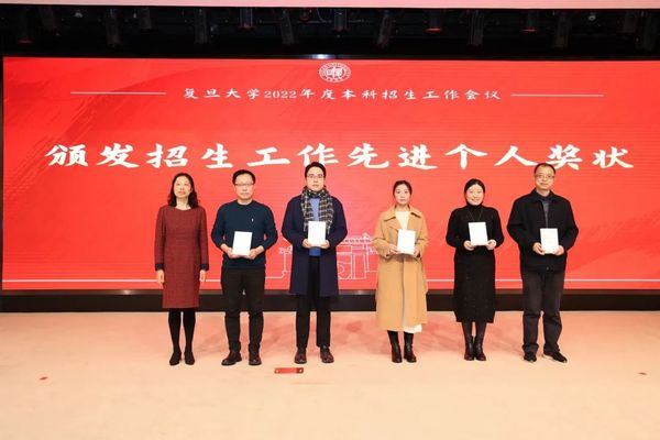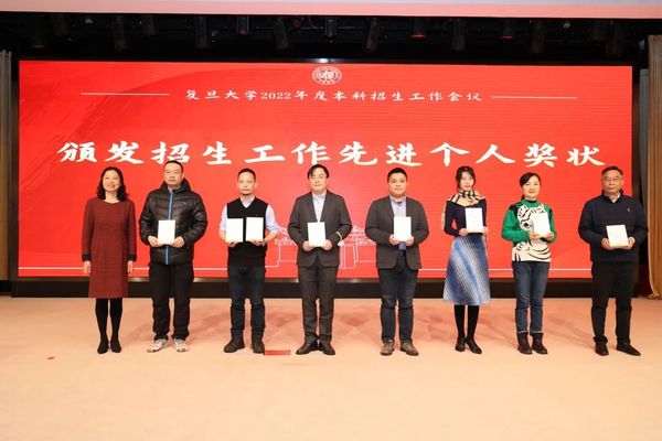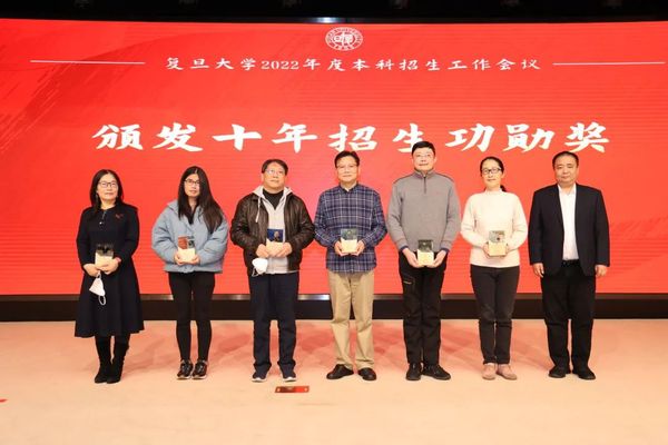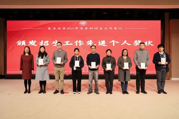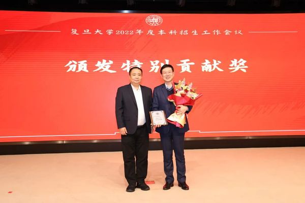 郑方贤荣膺“招生特别贡献奖”,金力为其颁奖。郑方贤曾在2002至2009年担任复旦大学招生办公室主任,为复旦大学招收一流的本科生源,建设一流的招生团队作出了突出的贡献。他在任期间,主持了被称为“高考改革破冰之旅”的复旦大学自主选拔改革试验,首创涵盖高中10门科目的“复旦千分考”,推出了旨在选拔人文素养突出学生的“博雅杯征文大赛”等一系列创新举措,在我国本科招生改革的历程中具有远见卓识。复旦目前实施的院系对口省份的招生宣传工作责任机制,也正是郑方贤在2007年推动实施的。郑方贤在获奖感言中回顾了复旦大学本科招生改革、机制创新的历程,希望全体复旦人齐心协力,为“第一个复旦”的本科招生工作做贡献。