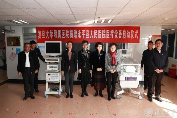 随后,焦扬,许征,李德琦,罗晓波,华克勤,徐虹,县委常委、永平县副县长赵海、永平县人民医院院长施超凡共同出席了复旦大学附属医院为永平县人民医院捐赠腹腔镜、婴儿培养箱等一批医疗设备启用仪式。