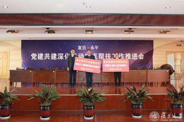会上,新时代复旦·永平党建创新实践基地揭牌,新一批复旦院系党委与永平县乡镇党委完成党建结对,二级院系党委、附属医院、复旦管理学奖励基金会、上海复旦大学教育发展基金会等进行捐赠,“复旦大学附属医院加强永平县人民医院专科建设行动计划”正式启动。