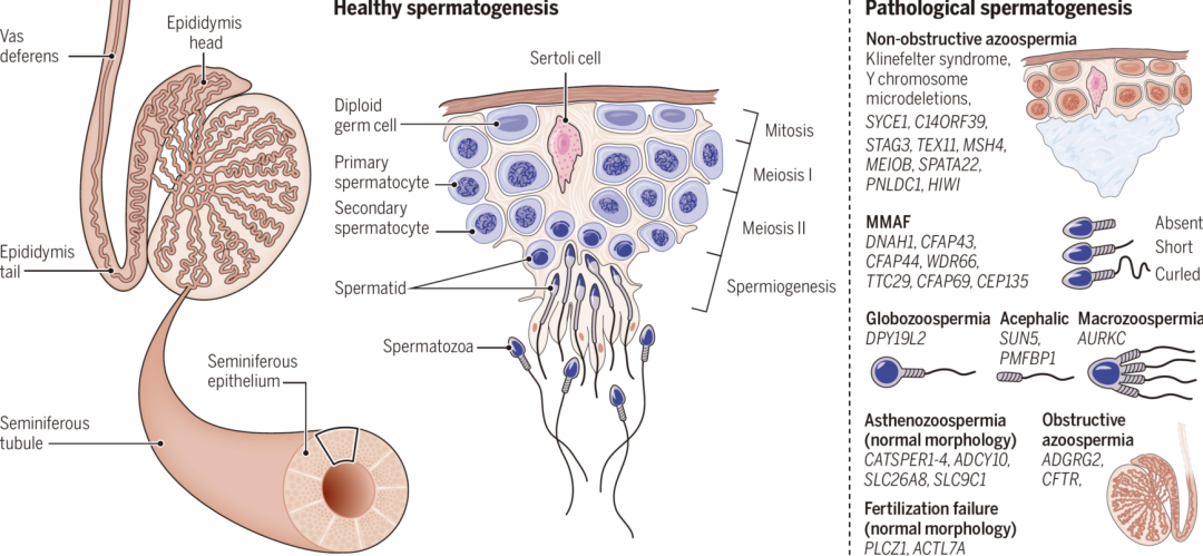 图1 不同类型精子发育异常及致病基因