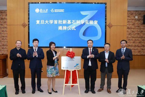 金力、王妩蓉、沈维孝、张远波、鲁伯埙、徐彦辉共同为复旦大学首批“新基石科学实验室”揭牌